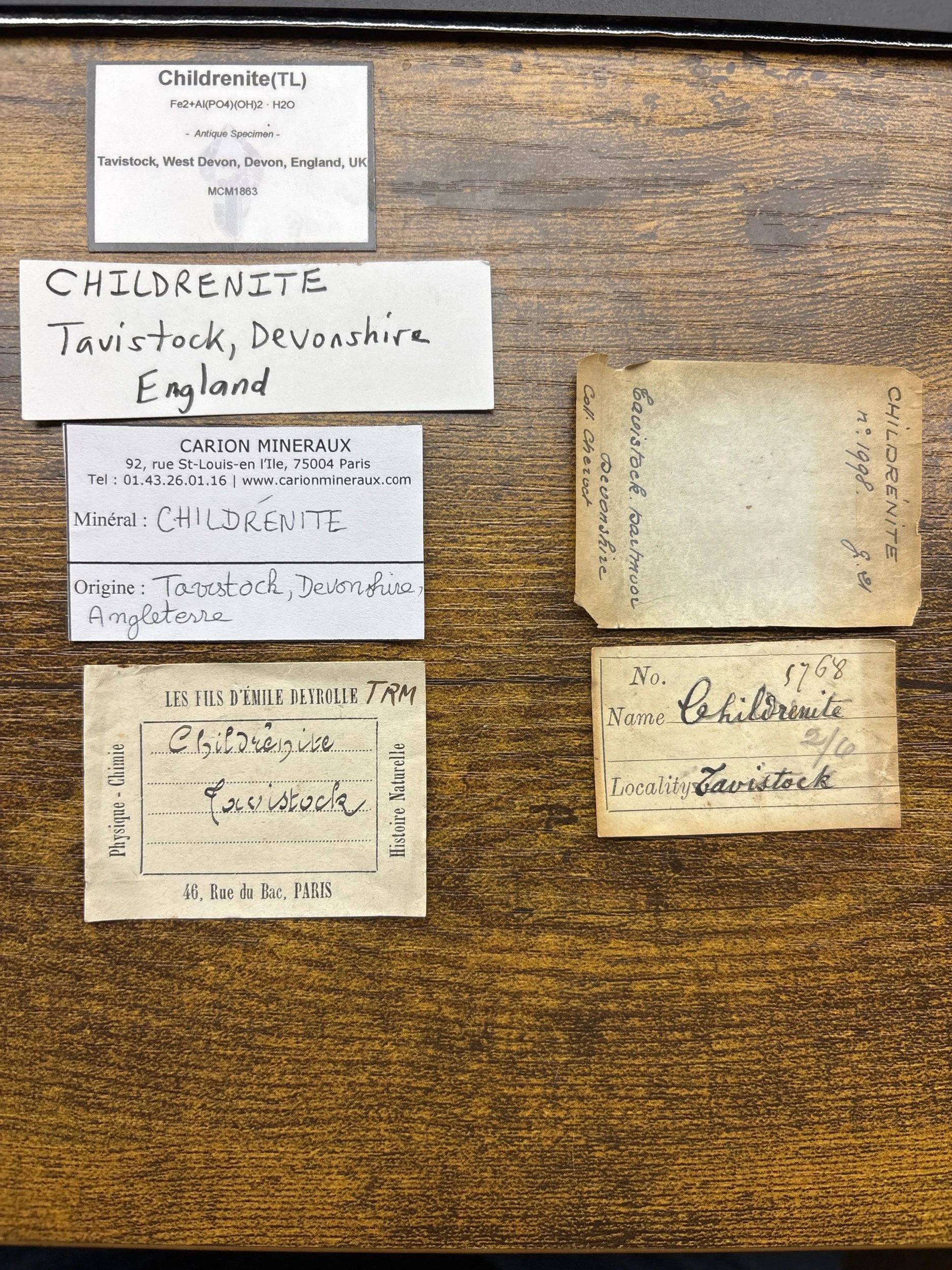 This specimen, albeit the typically easy to look past, has serious provenance! Not only being a type locality mineral, there are 6 labels that comprise the train of ownership. The label train suggests almost all of its human-life was spent in European collections. For an antique specimen, type locality, or otherwise collector this piece is an easy “yes”.